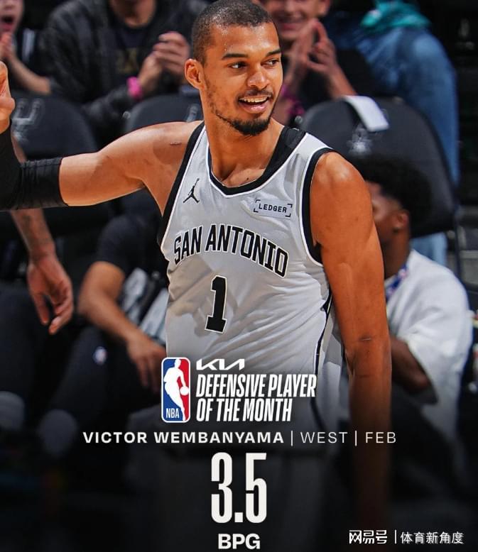 先来说说最佳球员,文班亚马在单月里场均能砍下22.5分,摘下11.3个篮板,还能送出3.5次盖帽,在他的助力下,球队取得了11胜0绩。这是文班亚马职业生涯中首次荣膺月最佳球员,相信有了这“第一次”的铺垫,未来他必将多次斩获此项荣誉。